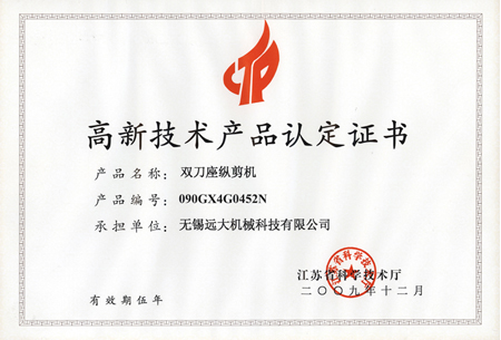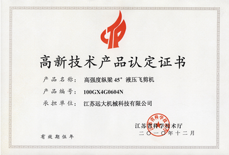 高品證書(高強度45飛剪機)