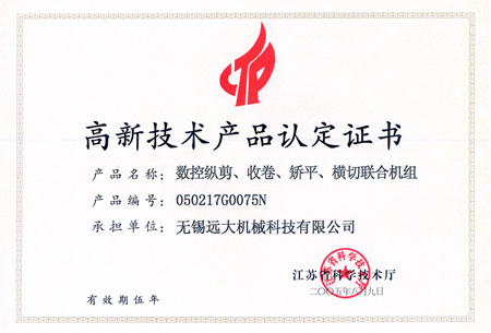 高品證書(數控縱剪、收卷、矯平機組)
