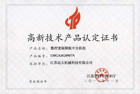 高品證書(數控寬幅銅板中分機組)